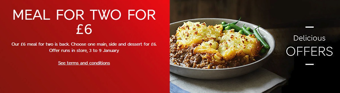 Enjoy a main, side and dessert while sale shopping at Marks & Spencers for only £6. The offer only lasts until Tuesday the 9th, so get your sale shopping out of the way and enjoy this 3 course meal for 2. Learn More About The Offer -> Here....